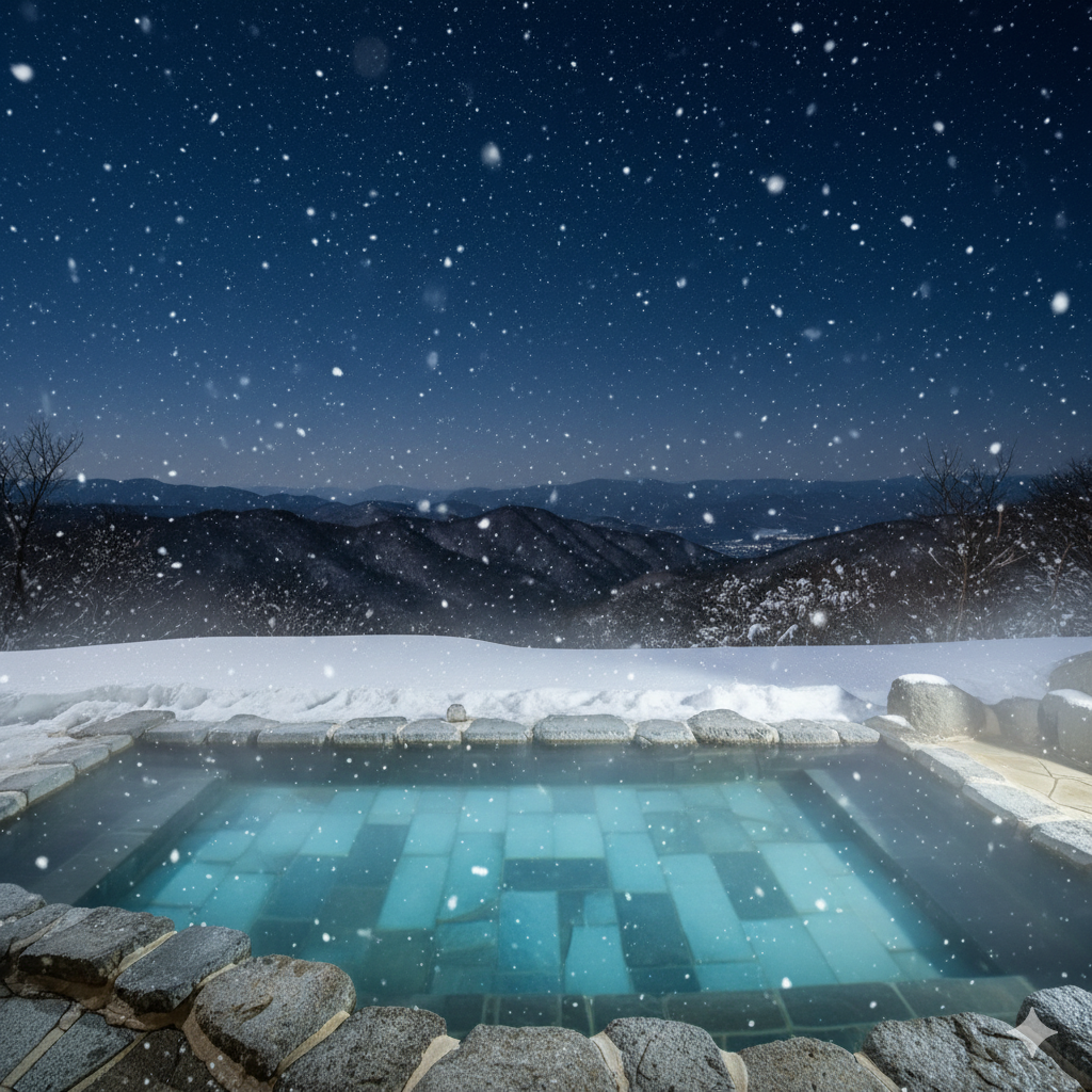 万座温泉の混浴露天風呂に夜中に1人でやってきた女子中学生